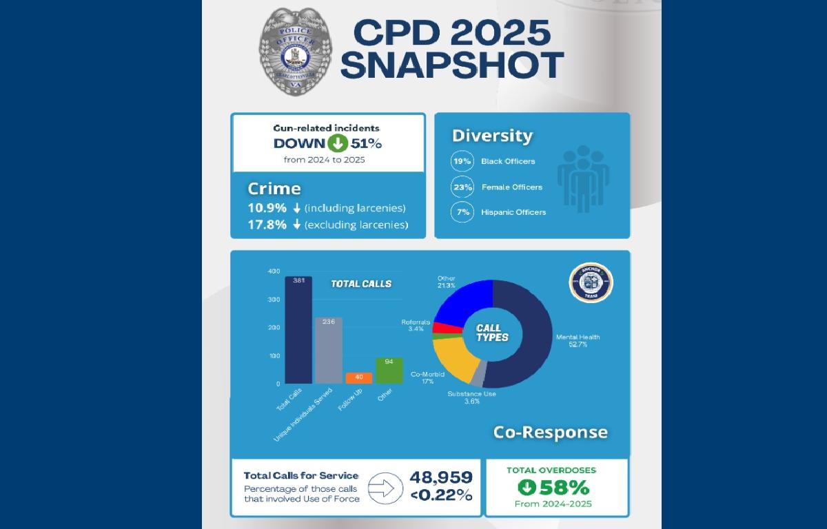 CHARLOTTESVILLE, VA (CVILLE RIGHT NOW) – The Charlottesville Police Department has released its 2025 Snapshot, which shows gun-related incidents decreased by 51% from 2024 to 2025, marking one of the most substantial public safety improvements in recent years.