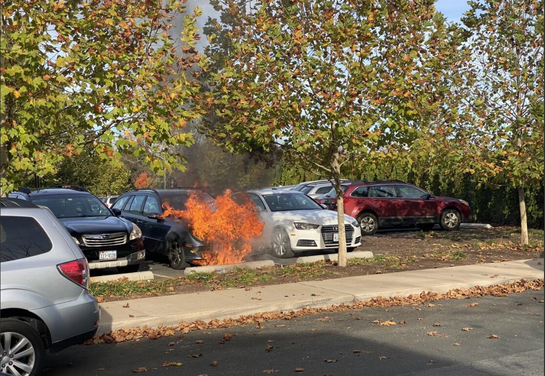 The Charlottesville Fire Department responds to a car fire at the Dairy Market