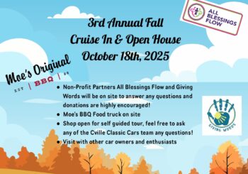 Liz Hart and Steve Messere joined the program to promote a festive event at Cville Classic Cars to benefit local nonprofits “All Blessings Flow” and “Giving Words”, organizations that provide free home health care equipment as well as free transportation for single moms and more.